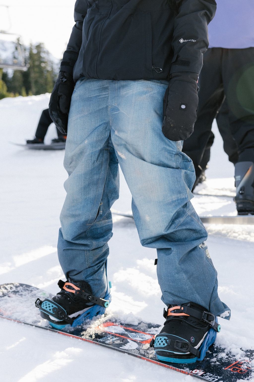 A 10k waterproof insulated tech pant designed to look like deconstructed denim—get the look of shredding in jeans without sacrificing comfort and performance.