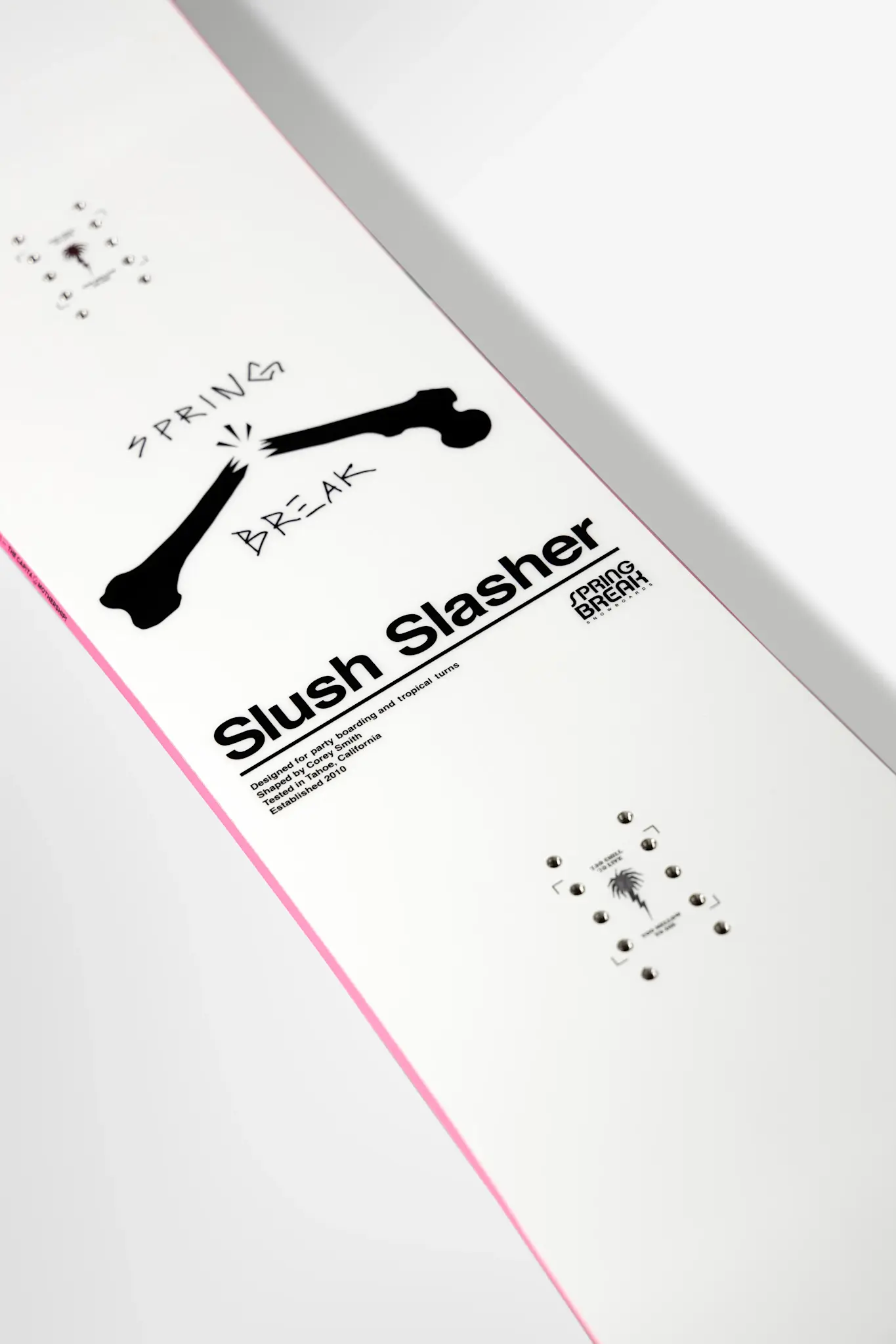 Experience the ultimate party board. Engineered with a Dual Core™, Special Blend Fiberglass configuration, SuperDrive™ base and an inlaid Alloy Skid Plate to protect the V-Shaped Vacation Tail™, the Slush Slasher 2.0 is ready for high-speed carves, powder slashes and freestylin’ all over the mountain.