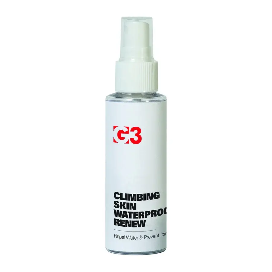 G3's Nano-tech Climbing Skin Waterproof Renew spray for at-home application creates a unified, flexible, and environmentally friendly layer that repels water from the skin fabric and prevents icing. Compatible with any nylon or mohair skins.