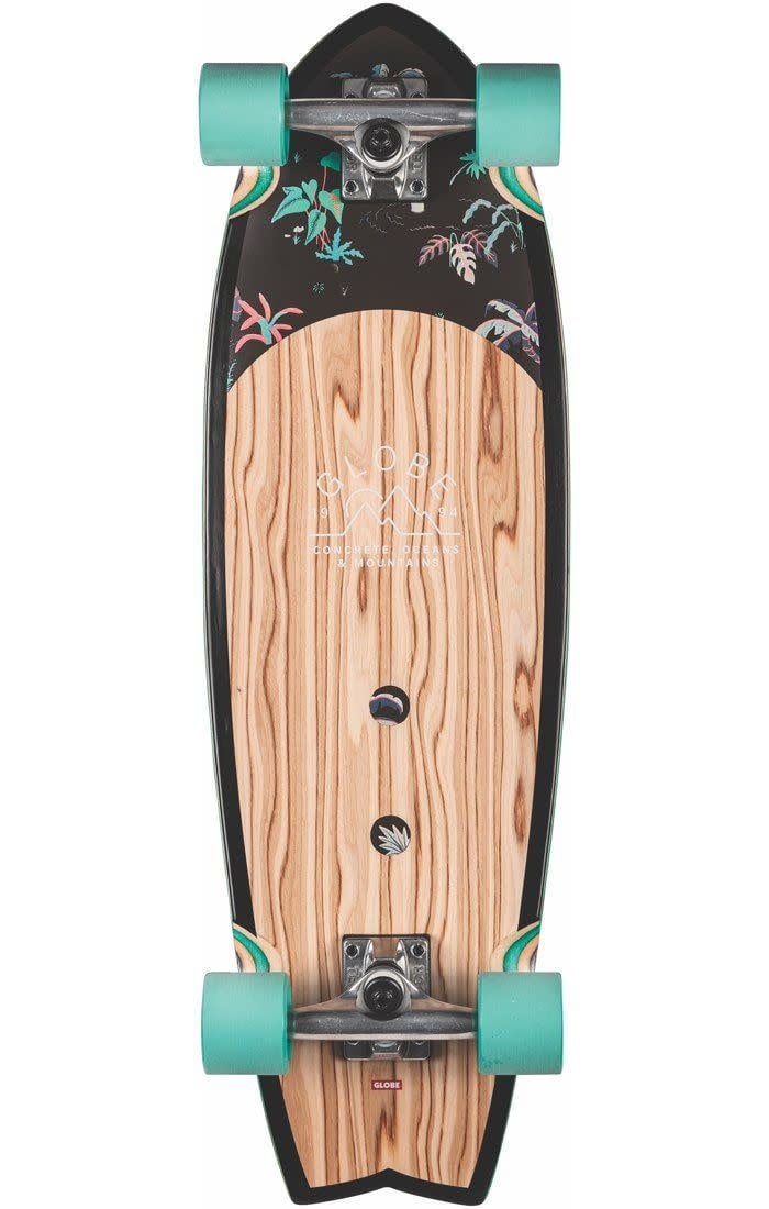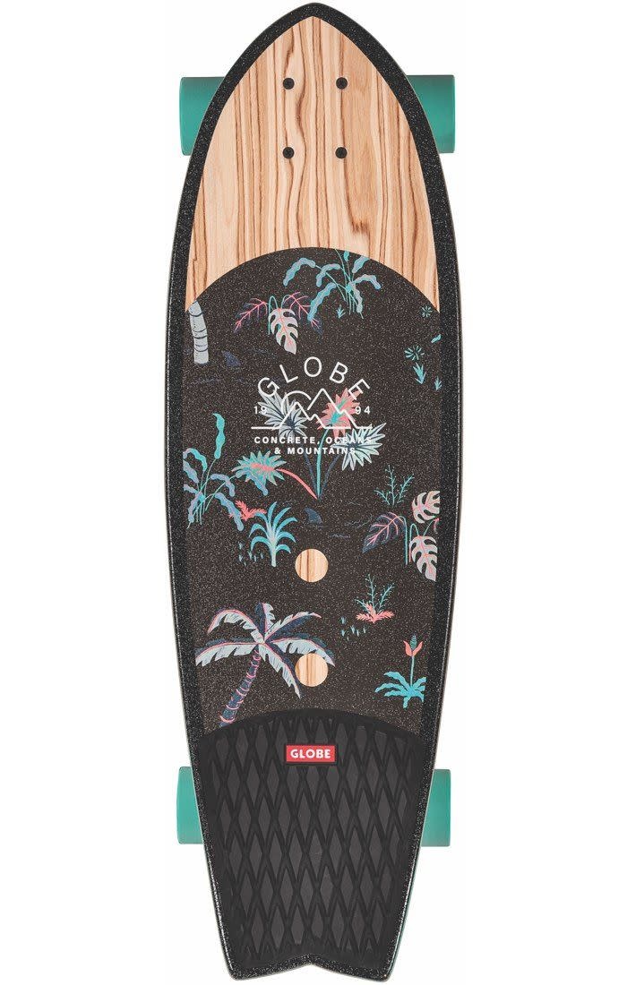 Create an accountSurf-inspired swallow-tail cruiser. The Sun City in Olivewood/Neon Jungle features Resin-7 hard rock maple deck construction with mellow concave and kick tail. Also features 5.25” Tensor alloy trucks and 62mm 78a conical cruiser wheels for a smooth ride.