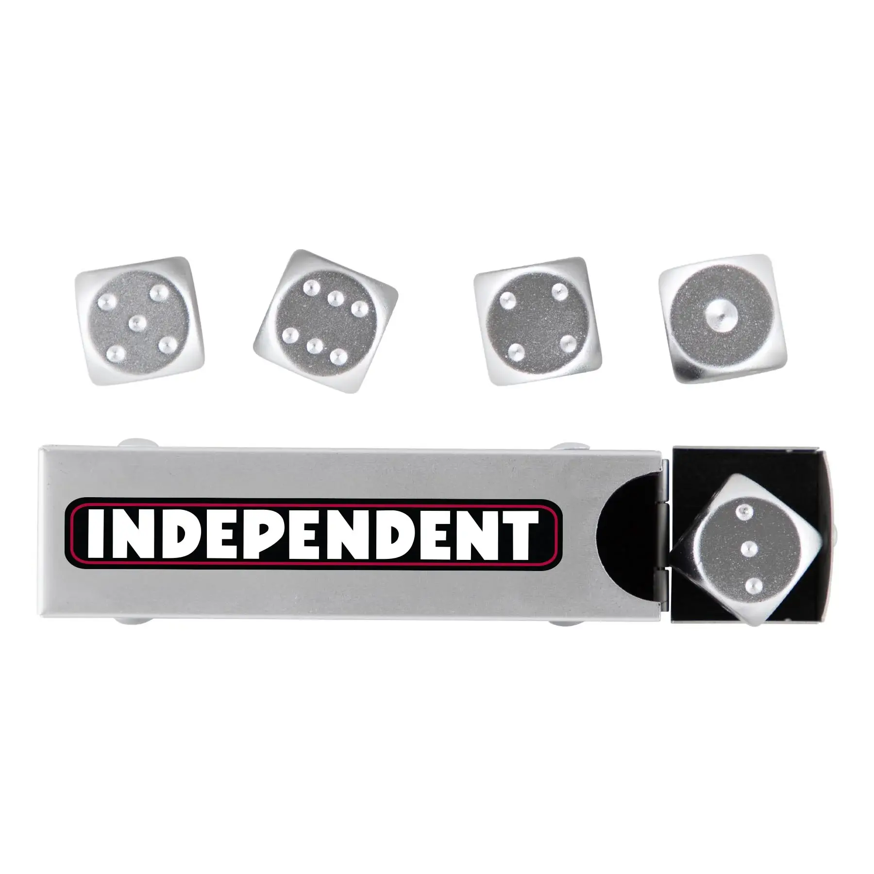 Create an accountWhether it's all 3's or or you shut 'em down with the 456, the Independent Bar Logo Dice Set features 5 100% aluminum dice in a custom box with the Independent Bar Logo. From the #1 truck company so you know the aluminum is top tier. Let it ride.