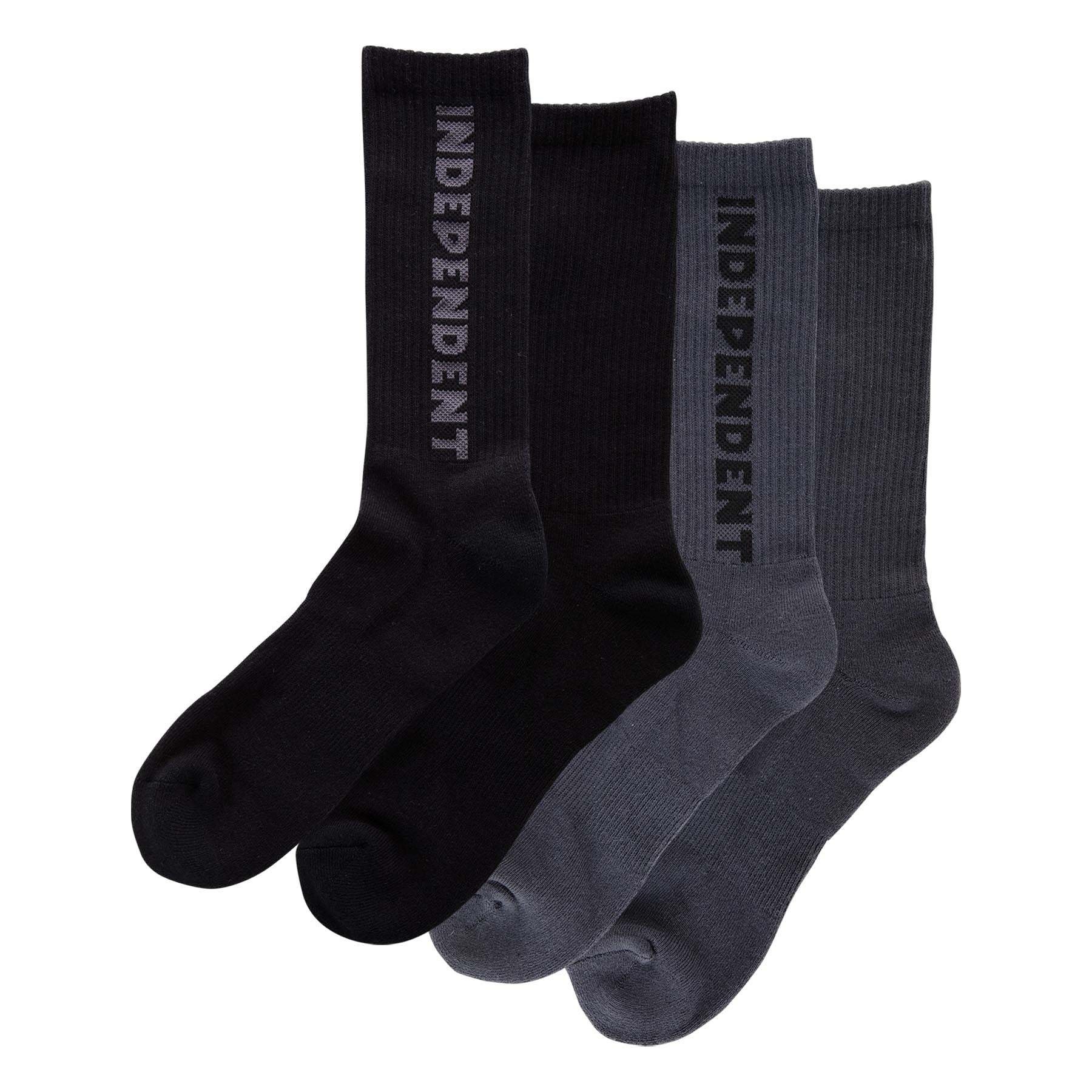 The Independent Baseline 2-Pack Crew Socks Black/Charcoal men's mid crew socks features arch support ribbing and knit-in Independent logo at ribbing. 2 pairs of socks: 1 black and 1 charcoal.