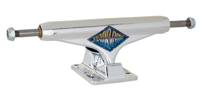 Super lightweight, mid-profile truck with forged baseplate, hollow axle, and new hollow inverted kingpin with shaft nut.