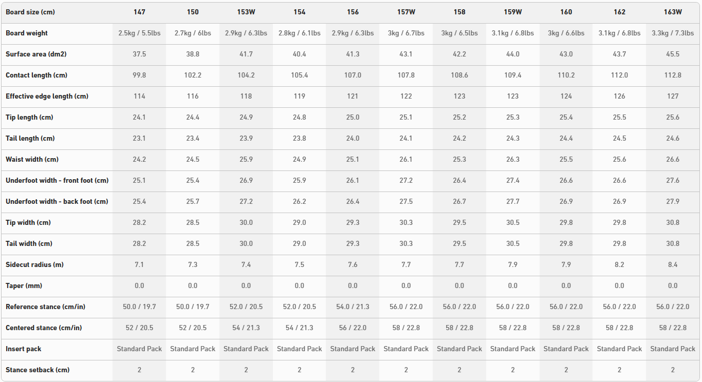 Advanced triple-density full wood core made from responsibly harvested Bamboo, Paulownia and Poplar. Bamboo stringers along the sidecut enhance durability, edge response and torsional stiffness, while the Paulownia keeps the core light and damp.